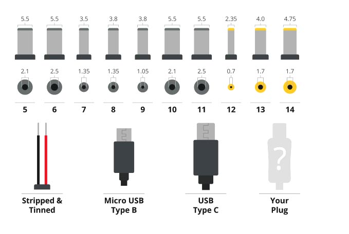 According to your device,the inner diameter, outer diameter and exposed of DC connector can be customized,if these don’t meet your needs,please let us know, we also welcome to provide your own plug.